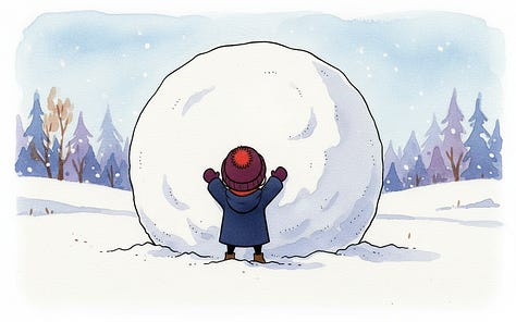 Nano-banana consistently produced a snowball that was about twice the size of the character. I tried a handful of strategies like “a massive snowball that fills most of the frame” or “the size of an office building” and edits like “Make the snowball 10 times the characters size”.